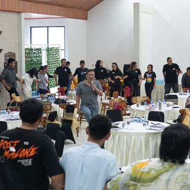 Workshop untuk Orang Muda Katholik (OMK) yang membahas mengenai dasar-dasar kepemimpinan yang diselenggarakan di Ruang Bima Griya Krisna Cafe, Resto & Convention Hall
